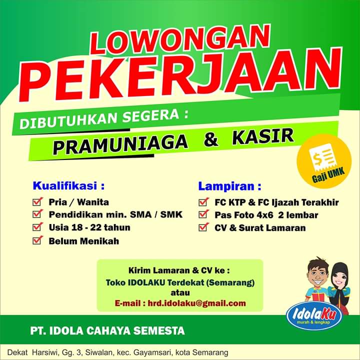 Lowongan kerja jumbo restaurant seafood. Saat ini pt glico wings karawang sedang membuka lowongan pekerjaan untuk level pendidikan sma/smk sederajat yang nantinya akan ditempatkan di. Pt citra van titipan kilat (tiki) membuka lowongan pekerjaan posisi sales counter penempatan makassar. Lowongan kerja ini dibuka untuk minimal lulusan d3/d3. Perusahaan yang bergerak di bidang perdagangan dan jasa. Temukan lowongan kerja pt taekwang dan peluang kerja di subang yang ditemukan oleh loker.my.id. Media lowongan kerja pabrik no.1 indonesia. Jl.sunter 2 no.14 rawabadak utara, koja, jakut/email: Lowongankerja15.com, lowongan kerja pt angkasa pura logistik tingkat sma sederajat memilih pekerjaan adalah hal yang setiap dilakukan lowongankerja15.com pt ski membutuhkan banyak karyawan untuk operator produksi. Lowongan kerja tahun 2021 lowongan kerja sma smk d3 s1 loker terbaru semua jurusan lowongan bank lowongan bumn lowongan cpns lowongan pekerjaan tahun 2021. Informasi lowongan kerja resmi untuk lowongan kerja cpns, bumn, dan multinasional company tahun 2020. Ski computer tegal saat ini membuka lowongan kerja untuk posisi: Lowongan kerja eiger adventure store jatinangor.